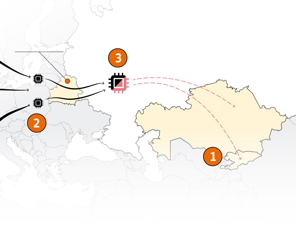 Қазақстан және Қырғызстанда тіркелген компаниялар Батыс Ресейге сатуға шектеу қойған тауарларға тапсырыс береді. Тауардың жеткізілетін орны тапсырыс берілген жермен сәйкеседі.