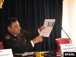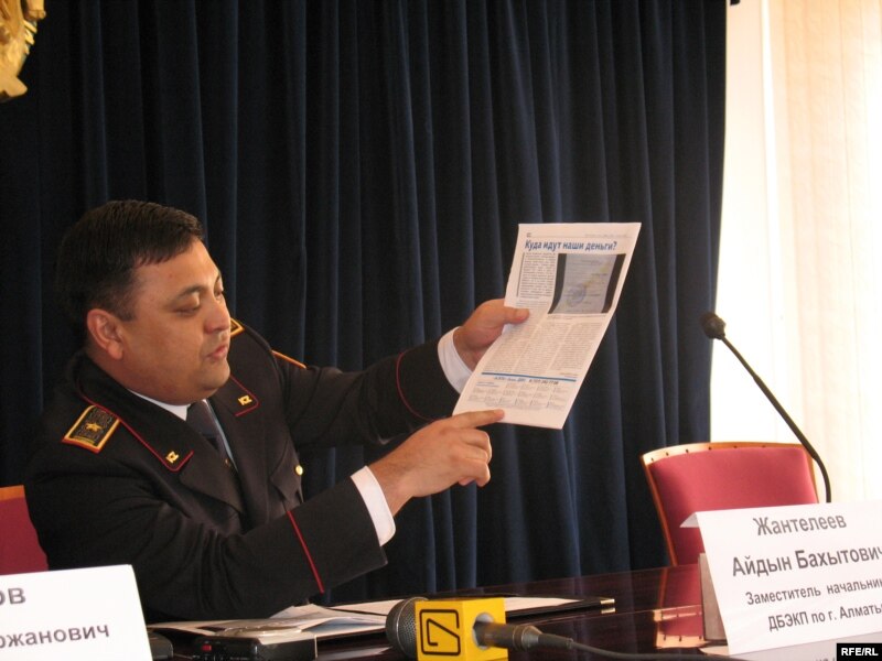 Алматы қаласы бойынша Қаржы полициясы бастығының орынбасары Айдын Жантелеев "Комета S" баспасы туралы баспасөз конференциясында. Алматы, 25 қыркүйек 2009 жыл.