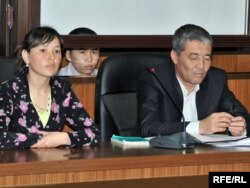 Адвокат Қанағат Маштахов (оң жақта) сот отырысында. Атырау, 21 сәуір 2010 жыл.