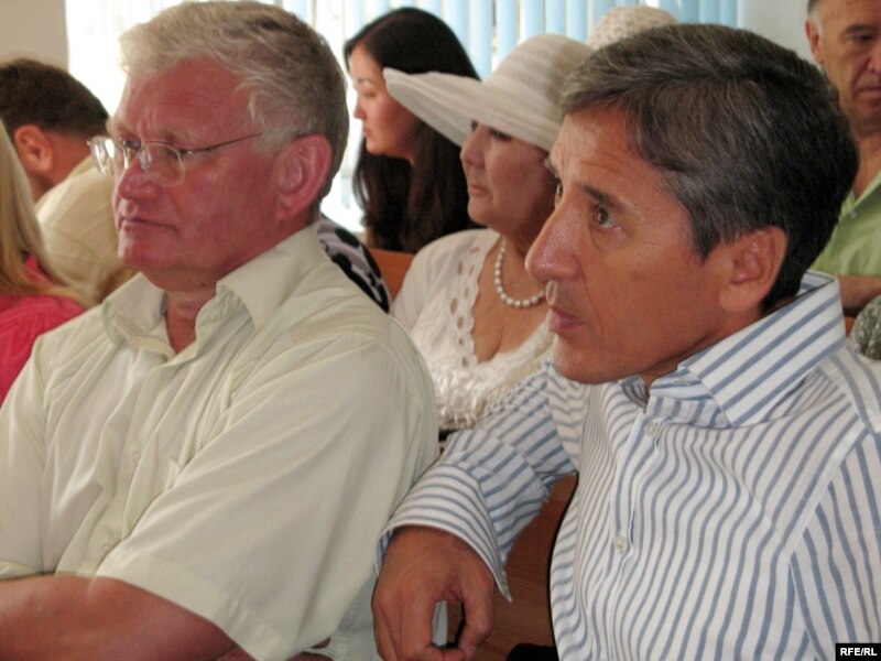 «Азат» партиясының төрағасы Болат Әбілов (оң жақта) және оның орынбасары Петр Своик әкімшілік соттың отырысында. Алматы, 21 шілде 2009 жыл.