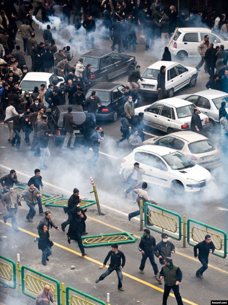 Теһрандағы үкіметке қарсы наразылық айтып шыққандардың толқуын басқан полиция оларға қарсы қару қолданды. 27 желтоқсан, 2009 жыл.