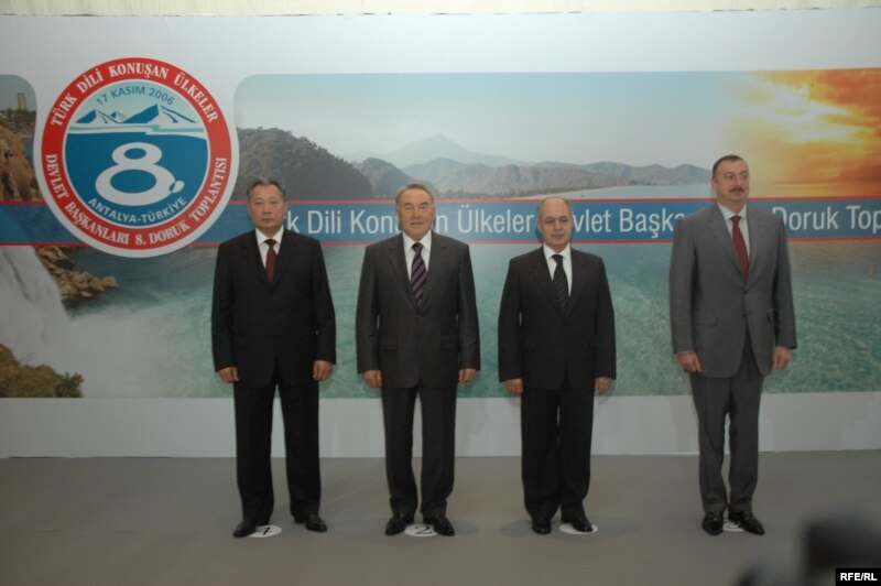 Түркі тілдес төрт мемлекет басшыларының кездесуінде (солдан оңға қарай): Қырғыз президенті Құрманбек Бәкиев, Қазақ президенті Нұрсұлтан Назарбаев, Түрік президенті Ахмет Сезер және Әзірбайжан президенті Ильхам Әлиев. Анадолы, 17 қараша 2006 ж.