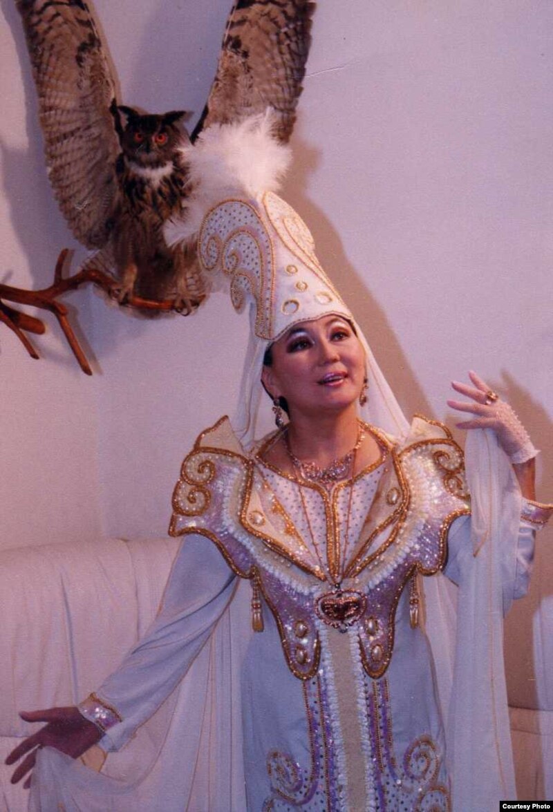 Әнші Мәдина Ералиева өзін елге әйгілі еткен «Ақбаян» әнін шырқап тұр, 1978 жыл. Жеке мұрағаттағы сурет.