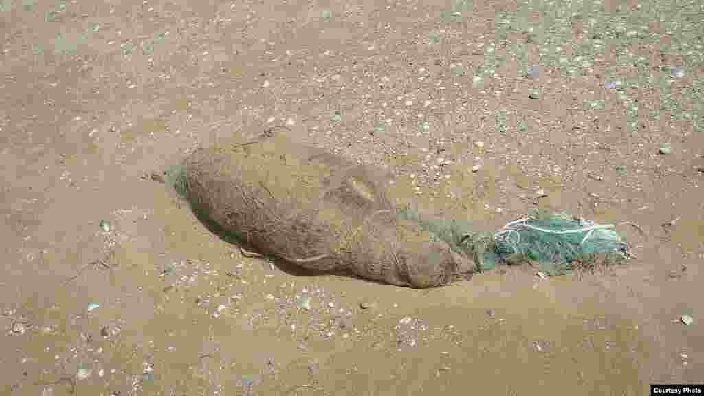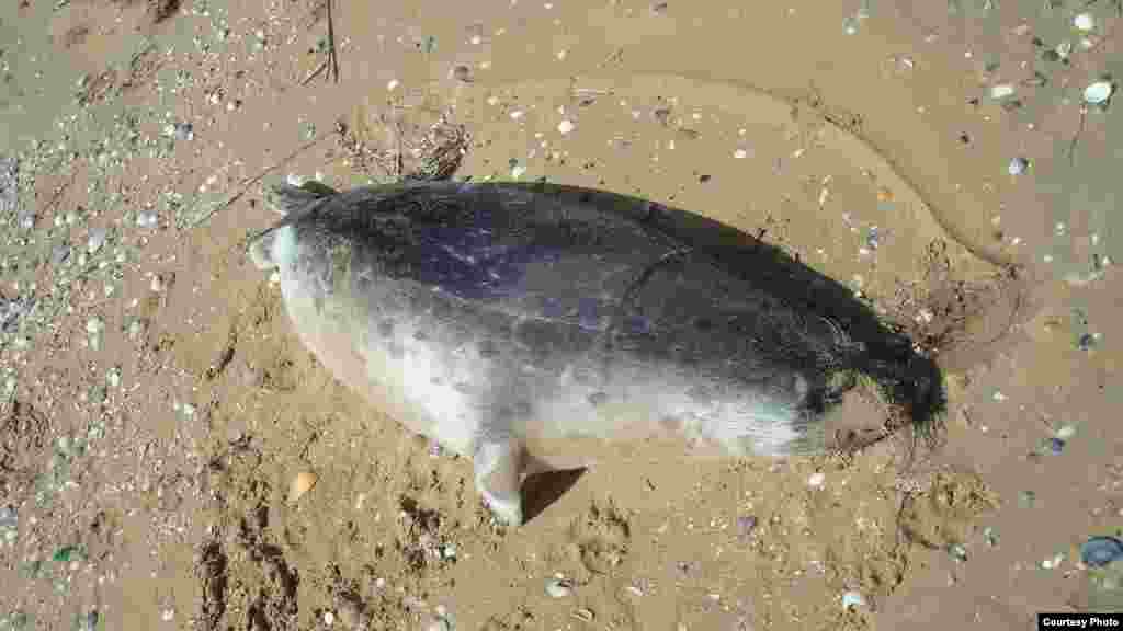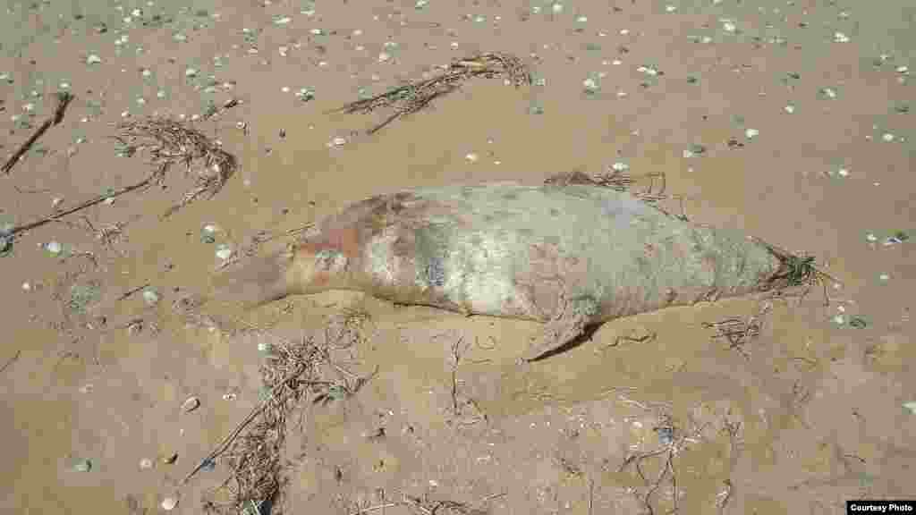 Маңғыстау облысы Түпқараған ауданы Баутино кенті маңында Каспий теңізінің жағасына шығып қалған алты өлі итбалық табылды. Азаттық сайтының оқырманы Асқар Айдарбай жолдаған суреттер. 27 сәуір 2013 жыл.