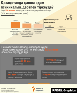 Қазақстанда 2020 жылдың соңында психикасында және мінез-құлқында кінәраты бар 190 мыңға жуық адам есепте тұрды. Дәрігерлер психикасында ауытқу бар науқастардың екі-ақ пайызы ғана өзге адамдарға қауіп төндіретінін айтады. Көбіне олардың өзі зардап шегі мүмкін.