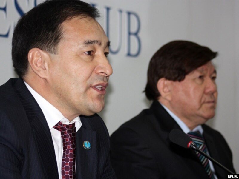 Cолдан оңға: Ералы Тоғжанов, Қазақстан халқы ассамблеясы төрағасының орынбасары және Мұхтар Шаханов, қазақ ақыны, «Мемлекеттік тіл» қоғамдық қозғалысының төрағасы. Алматы,. Алматы, 15 желтоқсан 2009 жыл.