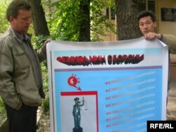 Баспанасыз офицерлер Қорғаныс министрлігі мен сот жүйесіне наразылық танытуда. Алматы, 27 сәуір, 2009 жыл.