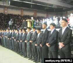 Мәуліт мерекесін атап өтуге Балуан Шолақ атындағы спорт сарайына жиналғандар. Алматы, 5 наурыз 2011 жыл.
