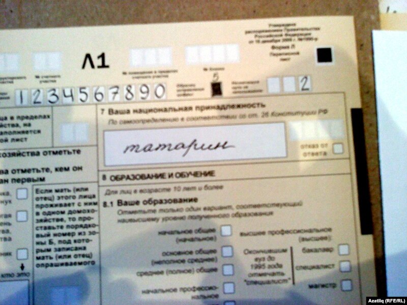 Бүкілресейлік халық санағының анкетасына жауап бергенде тұрғындар өз ұлтын қалауынша жазады. 16 тамыз 2010 жыл.