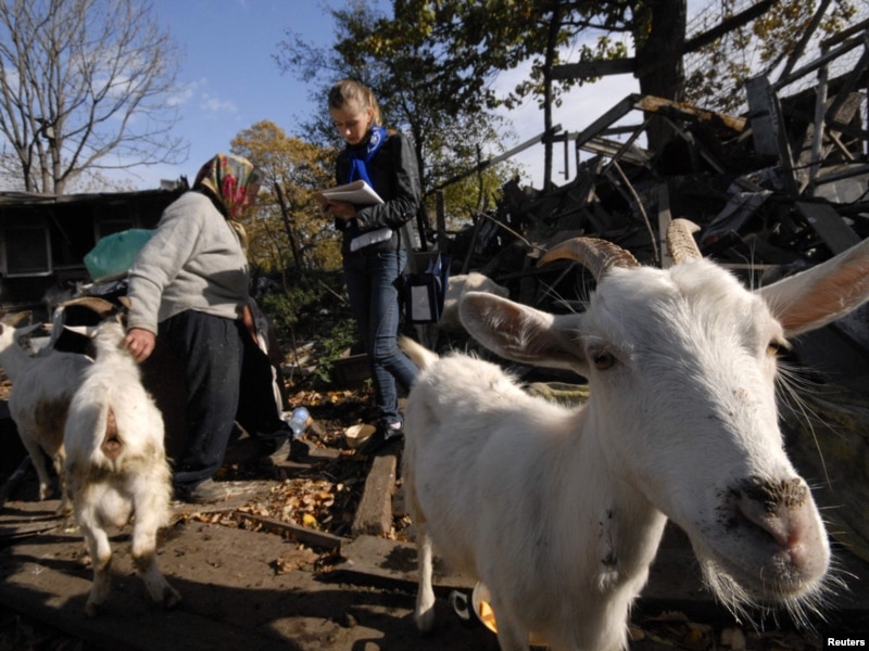 Санақшы жергілікті тұрғынның мәліметтерін санақ құжатына түсіріп жатыр. Владивосток, 14 қазан 2010 жыл.