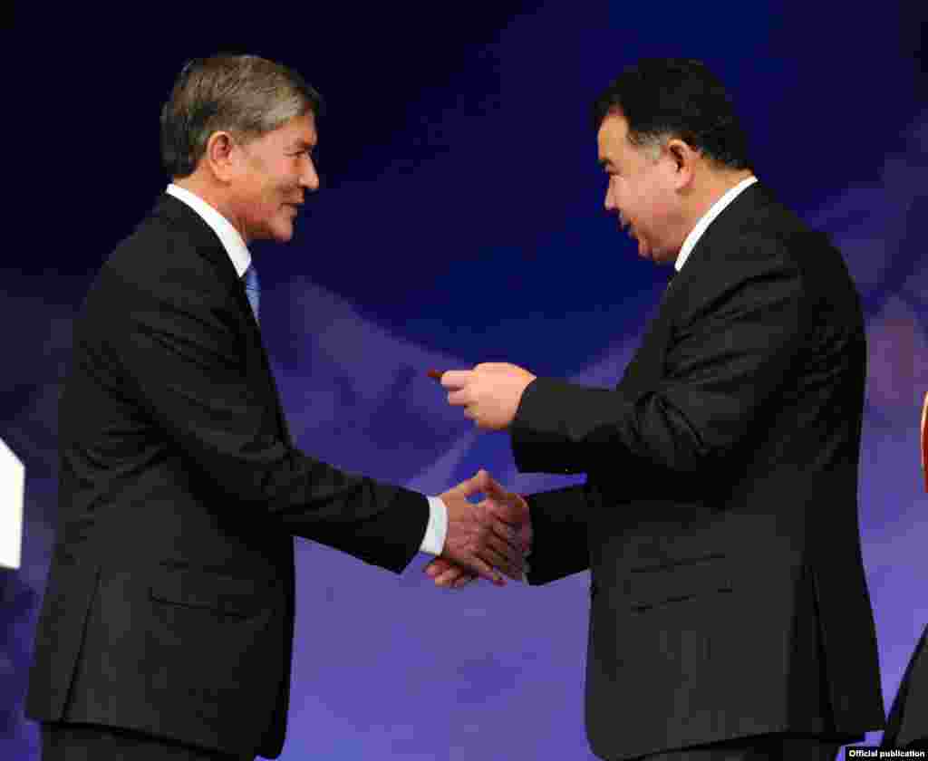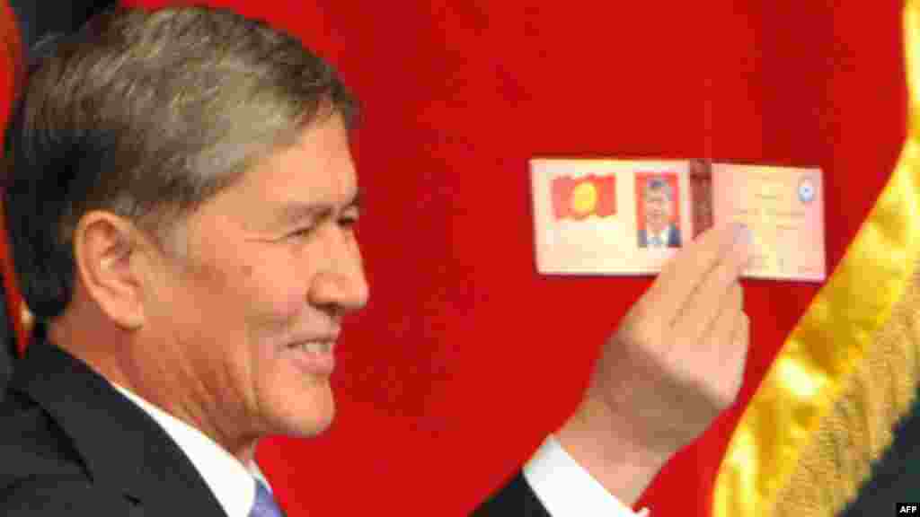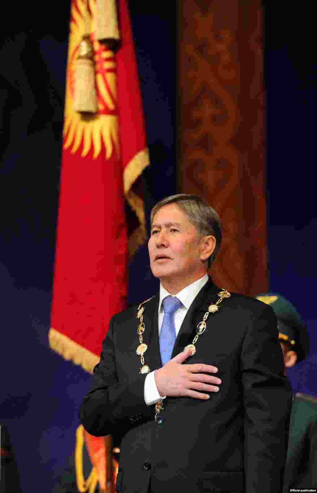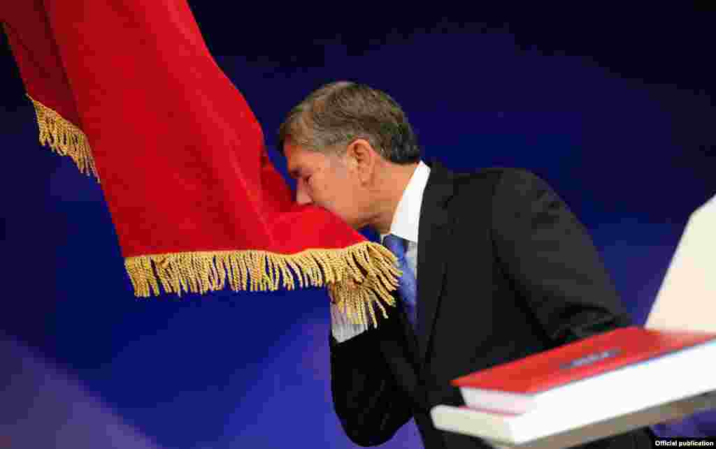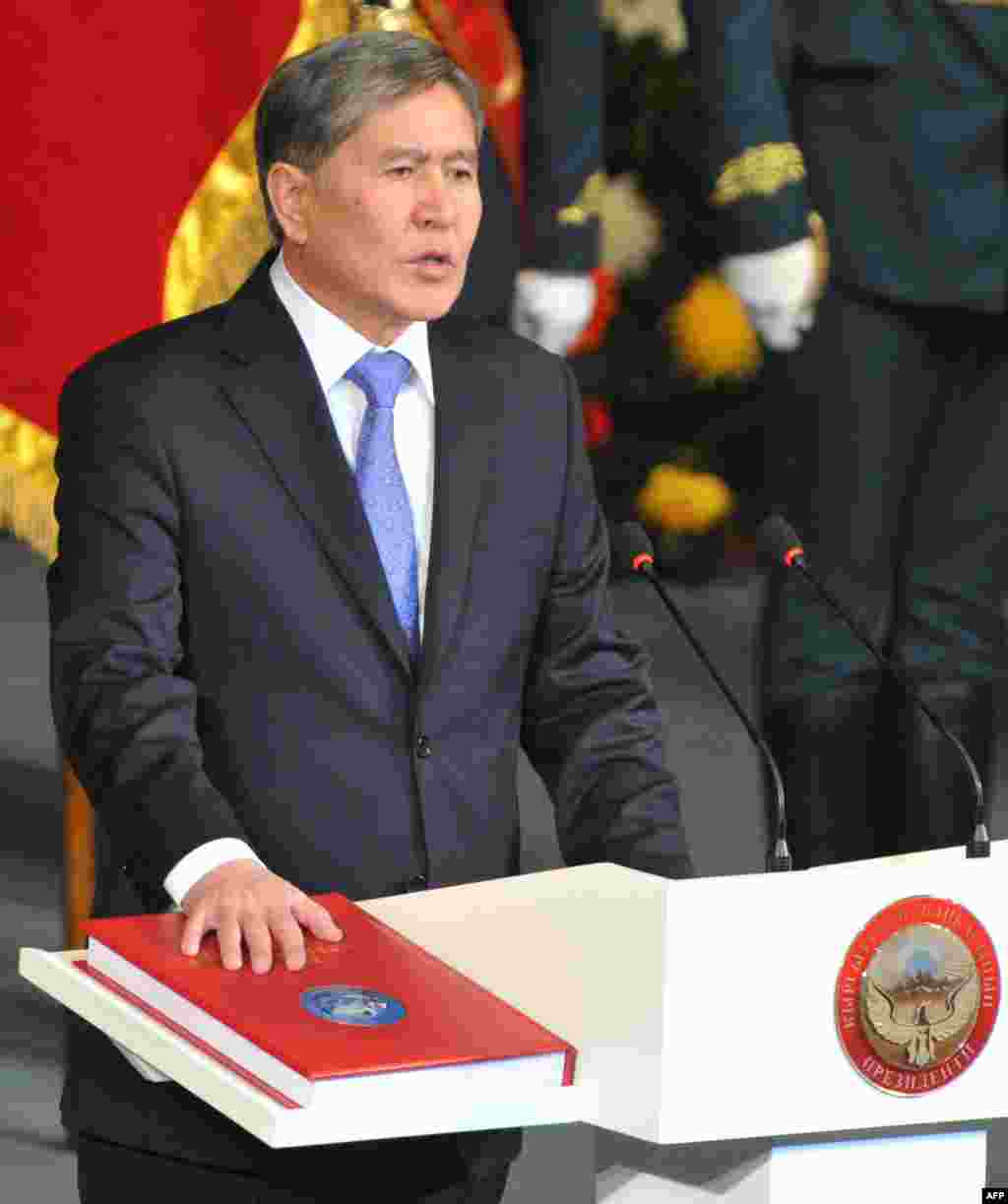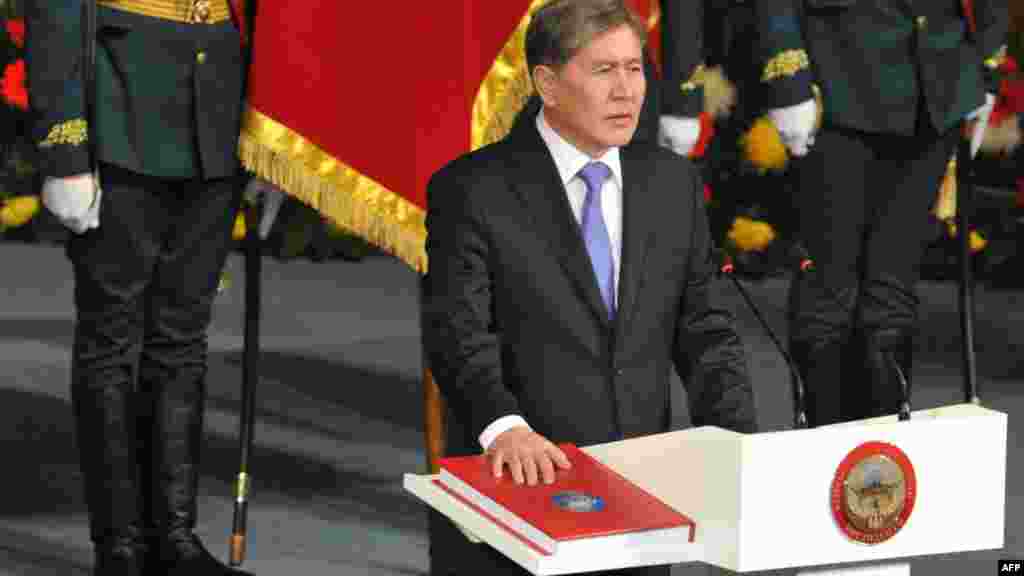 Алмазбек Атамбаевтың Қырғызстан президенті міндетін қабылдап, ант беру рәсімі. Бішкек, 1 желтоқсан 2011 жыл.
