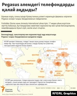 Зерттеушілердің айтуынша, Pegasus бағдарламасын Қазақстаннан бөлек, Әзербайжан, Венгрия, Мексика, Бахрейн, Үндістан, Индонезия, Марокко, Руанда, Того, Сауд Арабиясы және Біріккен Араб Әмірліктері қолданған.