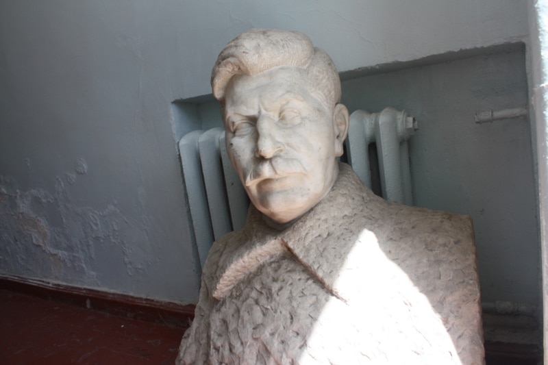 Сталиннің мүсіні, Никита Хрущев КПСС-тің 20-съезінде Сталиннің жеке басына табыну үрдісін «әшкерелегеннен» кейін тасалау жерге қойылып, кейін сыртынан қабырға қаланып кеткен екен.