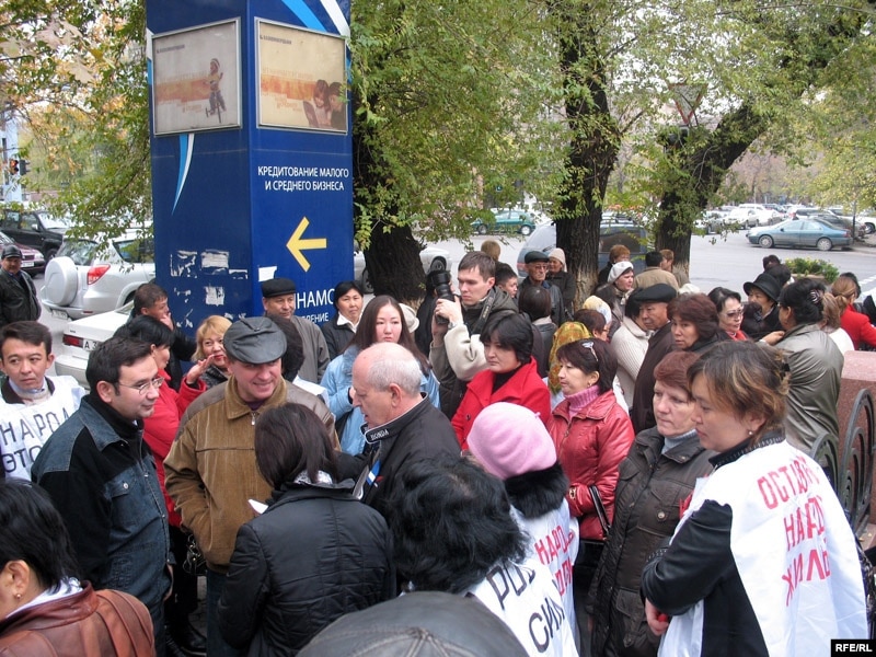 «Халыққа баспана қалсын» қозғалысы қазақстандық банктерге қарсы наразылық акциясын жалғастыруда. Олар бүгін АТФ банкінің алдына жиналып, оның басшылығымен кездесті.