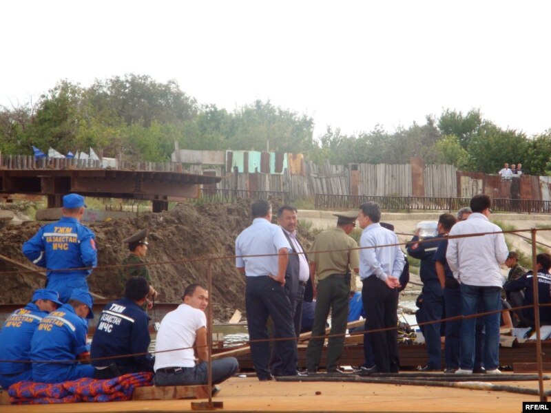 Азаттық тілшісі болған жағдайды көзбен көру үшін қайықпен құлаған көпірдің тұсына барған еді. Ауыр тонналы құрылым Жайық өзенінің дәл ортасына құлап түскен екен. Жайықтың арнасын жағасына дейін бөгеп жатып қалған ұзындығы - 106, ал ені 18 метрлік көпірдің құлаған бөлігінің үстінде төтенше жағдайлар департаментінің қызметкерлері, құтқарушылар мен «Трансстроймост» АҚ-ның кейбір жұмысшылары жиналып тұрды.
