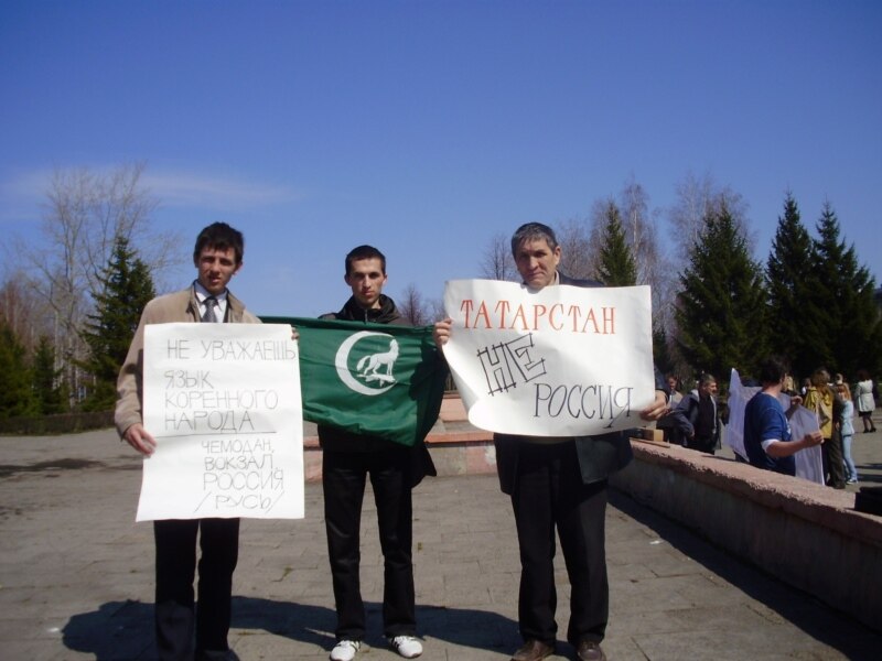 Татарстандағы орыс ұлты өкілдері татар тіліне қарсы шеру өткізді. Қазан, 18 сәуір 2011 жыл.